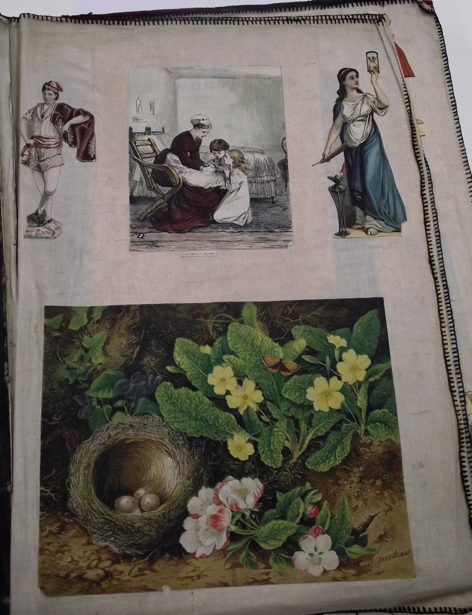 This scrapbook was created by the Wrigley sisters Marion & Constance from Bury. They made it as a Christmas present in 1878 for James, George, Edwin & Harold Alcock.